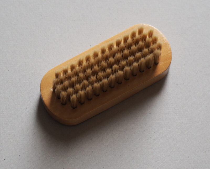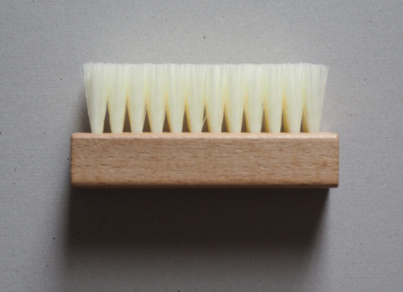 最初のステップは『ブラッシング』の工程です。革財布やレザーバッグの表面についた埃や汚れを落とす工程になります。