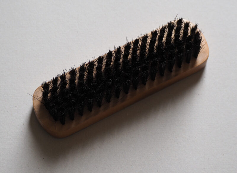 豚毛のブラシは馬毛よりも硬めでハリがありクリームを靴に馴染ませたりブラッシングして艶を出すのに使用します。