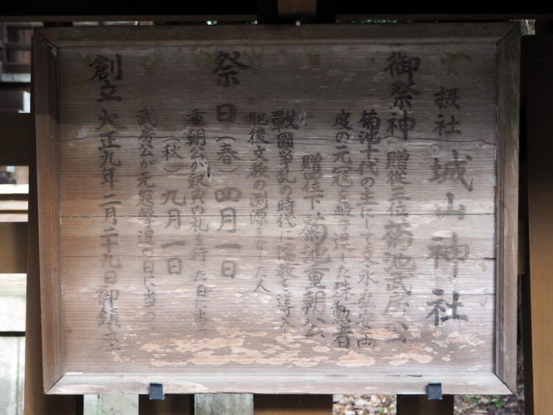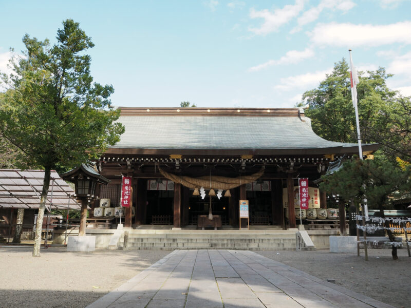 明治3年(1870年)菊池城本丸址に社殿を造営、同年4月28日に鎮座せられ明治11年に別格官幣社に列せられました。