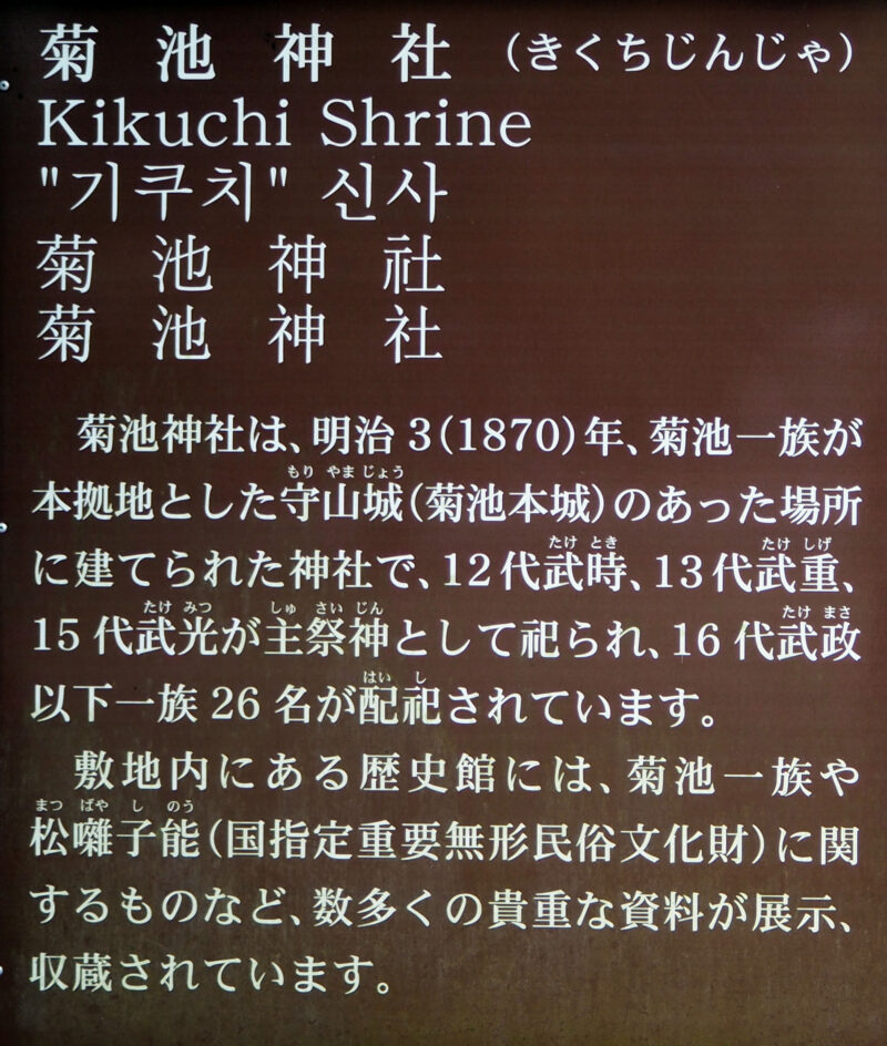 南北朝時代に南朝側で戦った菊池氏の三代が主神として祀られています。