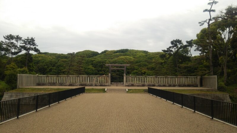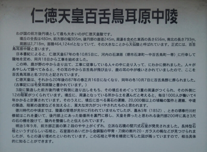 教科書に載っている空撮写真のように見えるわけも無く…仁徳天皇陵。大仙陵古墳または大山古墳。