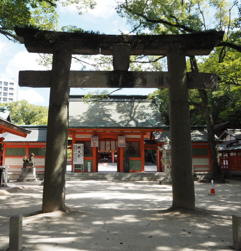 なお、神社は現在、内陸に位置していますが、中世の終わり頃までは、博多湾がこの一帯まで大きく湾入しており、当時は河口に突き出した場所に立地していました。