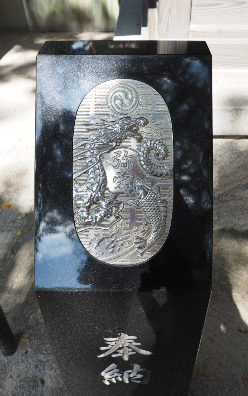 小判には龍と鯉が施されており、龍に触れると金運アップ鯉を触れると恋愛成就するといわれています。弥栄(いやさか)!