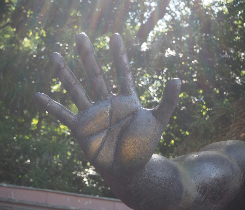古代力士像の手に手のひらを合わせるとパワーをもらえるのだとか。