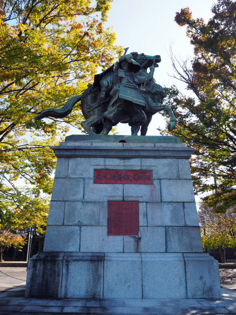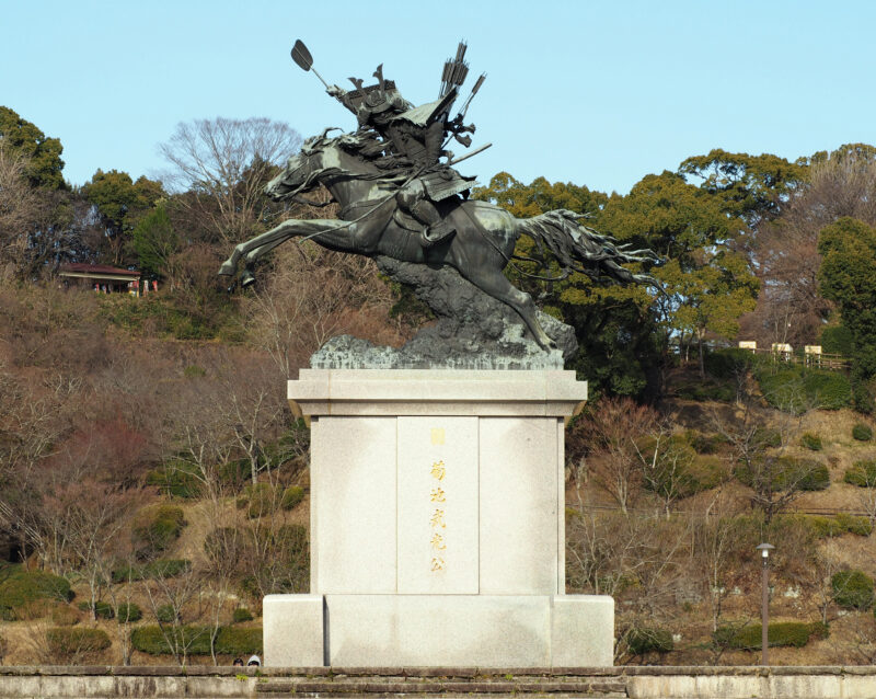 市民広場の西側にある『菊池神社』には、武光の父で12代当主の武時の騎馬像も。正面に広がる菊池市街を眺めれば、南北朝期に活躍した菊池一族の奮闘が目に見えるようです。