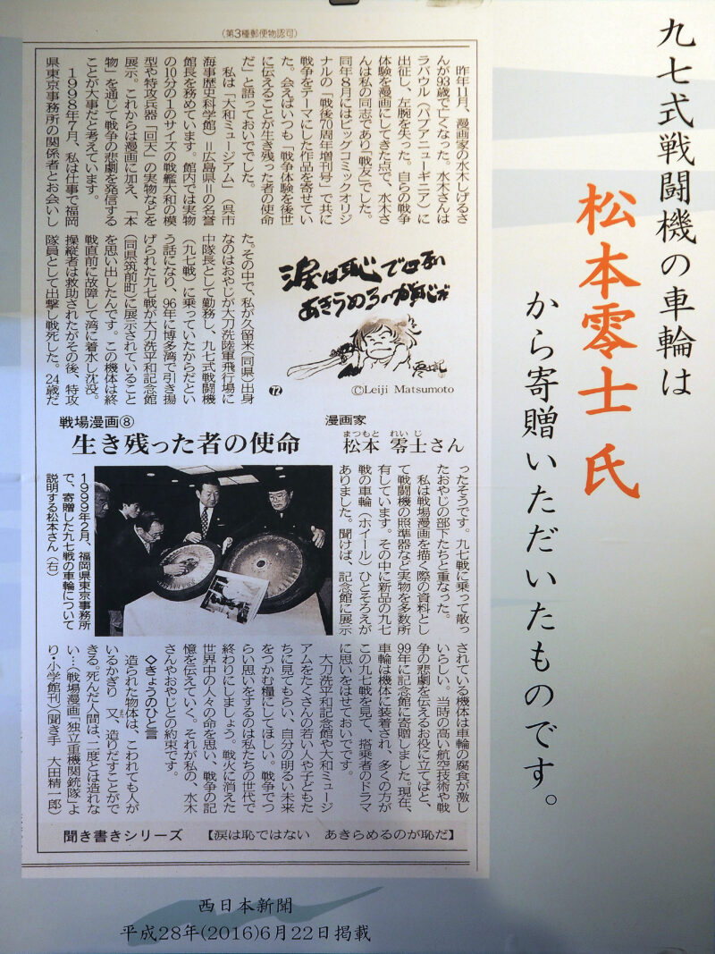 大刀洗平和記念館では、第一次世界大戦が終結した翌年大正8年(1919)から昭和20年までの約26年間を航空史と共に戦時中の航空基地・空襲・特攻隊・地域の戦争被害などを写真パネル、資料として展示、紹介。特攻隊の遺書・日記・地域住民被害に関する資料なども…