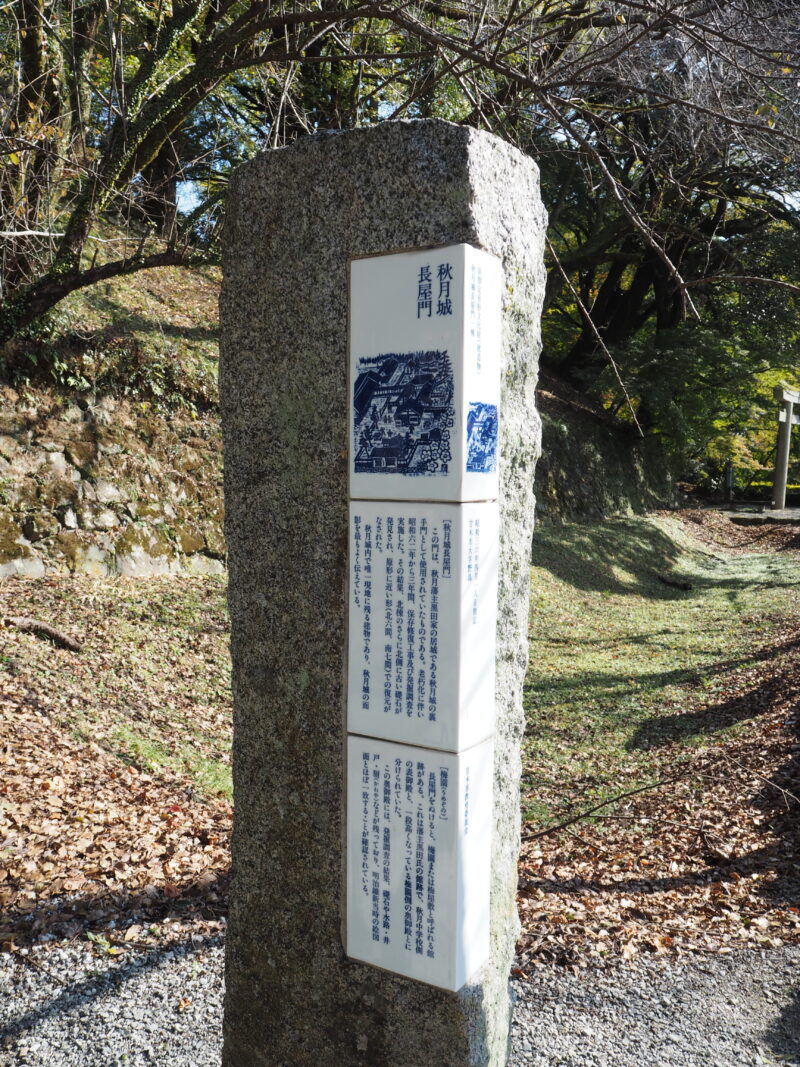 陣屋形式の小さな城で、城内は秋月中学校がある表御殿(役所)と奥御殿(藩主の生活の場)に分かれていました。