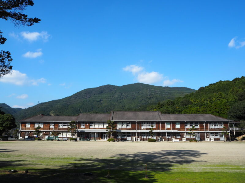 木の温もりを感じる木造校舎。小さい頃の記憶を呼び起こします。